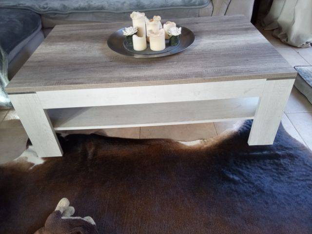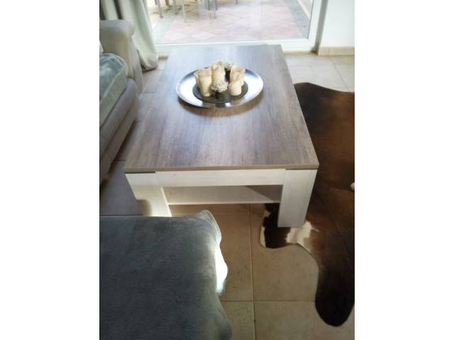 A very nice, almost new two-tone coffee table available due to emigration...the table is very modern and has an intermediate shelf...the dimensions are