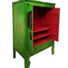 Chinese wedding wardrobe, can be used e.g. as a bar cabinet or for TV, emerald green decapé and fuchsia, elm wood (old), very nicely crafted, one-off piece, 105 x 63 x 170 cm