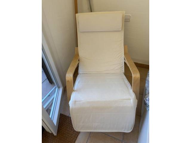 Rocking chair with footrest. Comfortable and manually operated. Only lightly used. No stains and from a non-smoking household.
