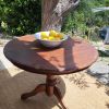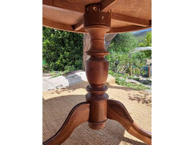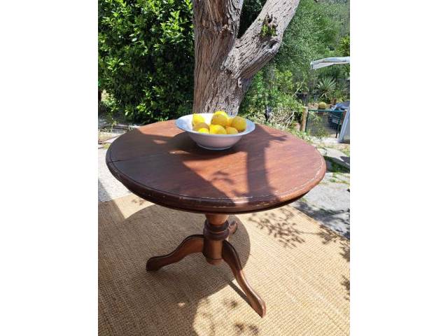 round, small, solid wood table, 90cm diameter, needs some attention, a new coat of paint or exactly this vintage charm is loved. Height 75cm. Located near Paguera.