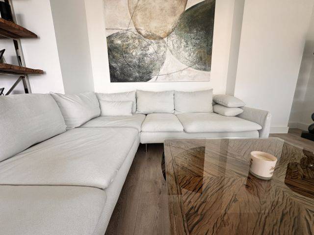 The sofa impresses with its modern, timeless design and a generous seating area. The light, elegant upholstery fits perfectly into a stylish living environment. Very comfortable and high-quality workmanship.