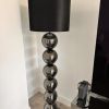 The floor lamp impresses with its extraordinary base made of several chrome-plated spheres in a smoke finish and an elegant black lampshade. A stylish eye-catcher for the living room or bedroom.
