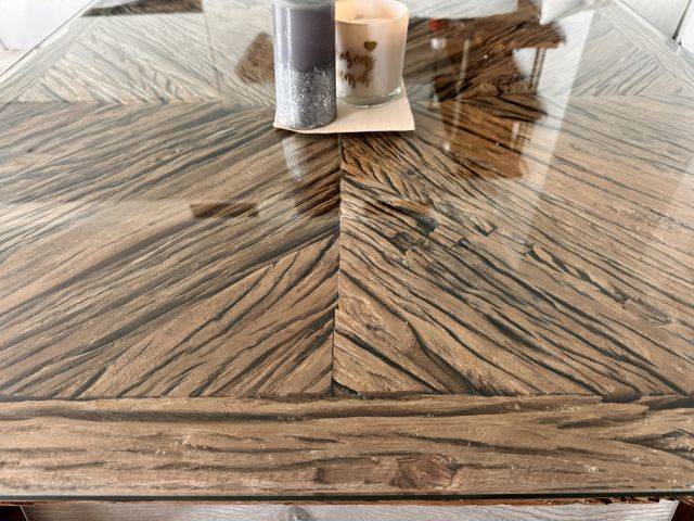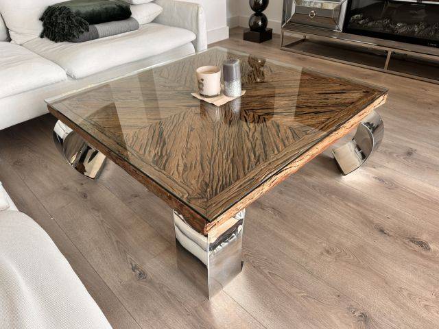 The wood has a special, natural grain and looks particularly elegant thanks to the glass top.