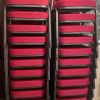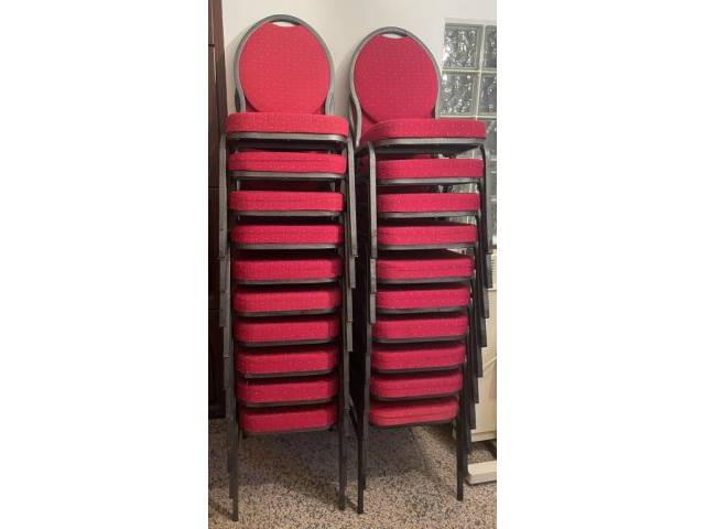 Robust and comfortable banquet chairs with red upholstery and a sturdy metal frame. Space-saving and stackable, ideal for parties, events, clubs or conference rooms. Well maintained and in like-new condition, ready for immediate use. Perfect for anyone who wants to store many seats flexibly and neatly. Quantity: 20.
