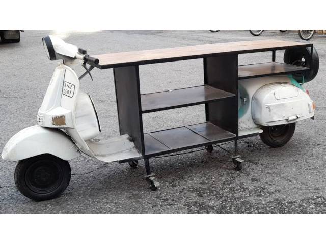 Unique moped furniture piece!!!! Sensational sideboard screwed onto a scooter, 250 cm long, perfect for retail or the home bar, put a tabletop on it ...whatever, there's more you can do!! You can roll that thing around!! €800 for something absolutely quirky!! mobile 659 637 788 (TRANSPORTS-MOVES-STORAGE!!)