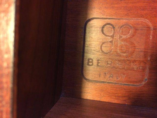 Designer Gianfranco Frattini, model 530, manufactured by the Italian company Bernini. Palisander/Rosewood. The desk has two drawers at the front and a storage compartment, two storage compartments at the back and various small compartments and drawers in the removable top section, which is fitted with rolltops. Good condition. Only minor signs of use. It can be placed freely in the room.