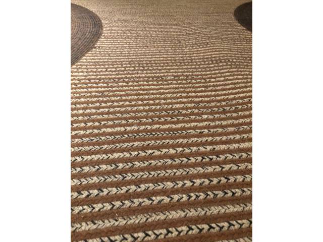 This is an elegant, high-quality rug with a warm natural base, striped texture and large curved elements in black and brown. It fits perfectly in both modern interiors and more relaxed settings, adding a very elegant and organic touch to a living room, bedroom, hallway or office. The original product is listed as Holiday Havane / Black Rug and has a retail price of €1,750 at Rue Vintage 74, with the 180 x 250 cm size available on the brand's page.