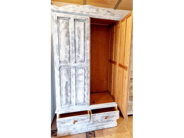 Selling a wardrobe in whitewashed real wood, dimensions: 2m high, 1 m wide, 60cm deep...