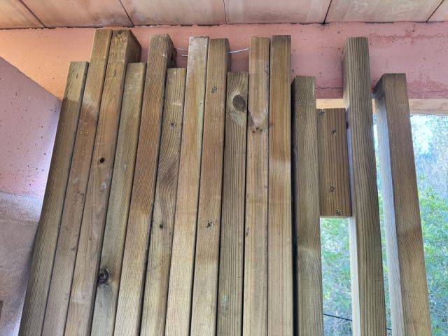 The slats were screwed on in 07/2025 as scaffolding for wood drying and have now been dismantled.