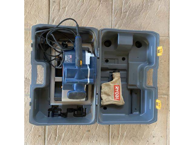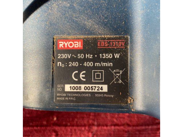 Ryobi EBS-1310V 400mm belt sander, includes clamp, dust bag, instruction manual, and case.
