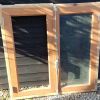 I am selling a wooden window, 1m x 1m, single-glazed, maybe usable for a garden shed or similar. One sash is missing the pane, which can be newly fitted.