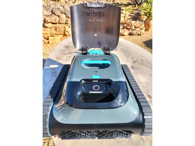 For floor and wall, cordless pool vacuum with wall climbing, intelligent navigation 2.0, 150 minutes battery life, pool cleaner for in-ground pools up to 150㎡. The robot still has warranty until June 26.