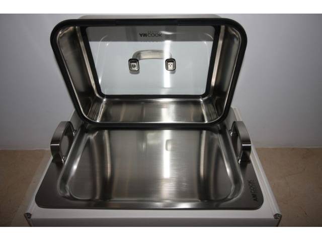 AMcook stainless steel Teppanyaki plate (Plancha) with glass-stainless lid in original packaging.