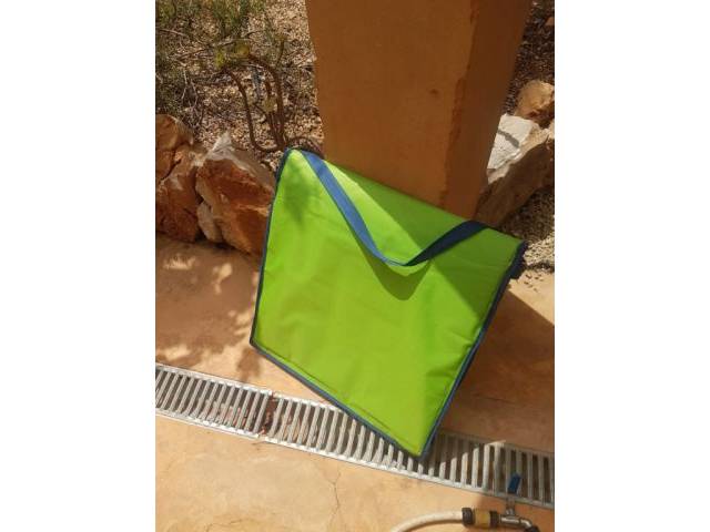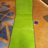 green, flat, lightly padded cushion with backrest, so that you can lean on, price 15,-