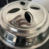 This ceramic Kamado grill is fueled with charcoal or wood and features a large cooking grate with a diameter of 26.5 cm.