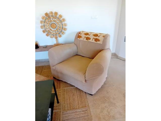 Well-preserved Casamilano armchair with taupe-colored cover, removable and washable!