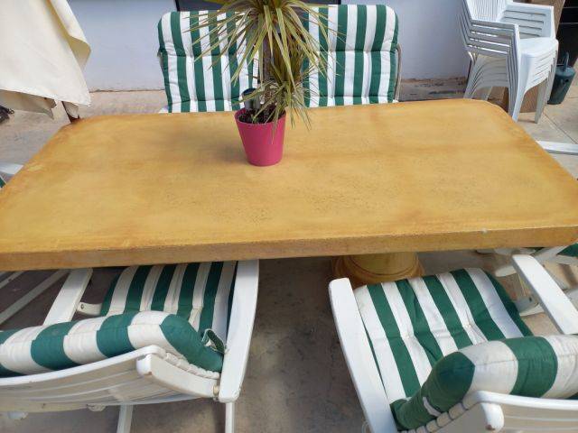 Concrete table/stone table very heavy, on columns, beige