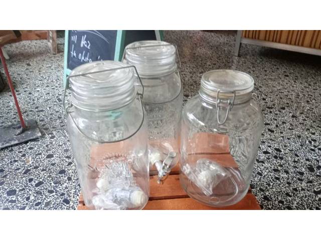 3 glass drink dispensers with taps. New! Comes with replacement tap. Each €20. Together €50. The next Sommier is coming.