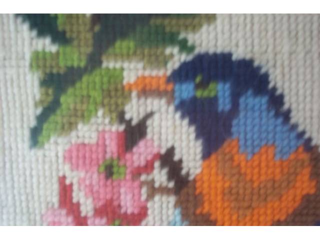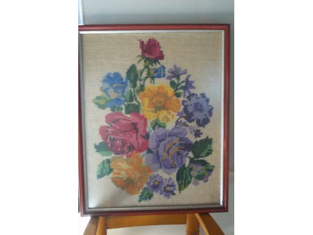 Framed handmade embroidery. Natural motifs. 2 equal measures 50 x 20 and one floral 49 x 39