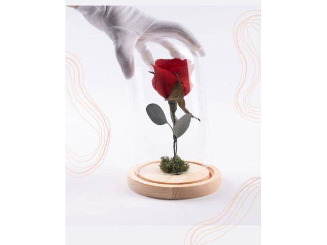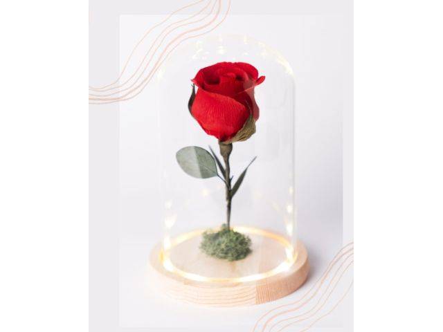 Eternal paper rose under glass dome with LED light