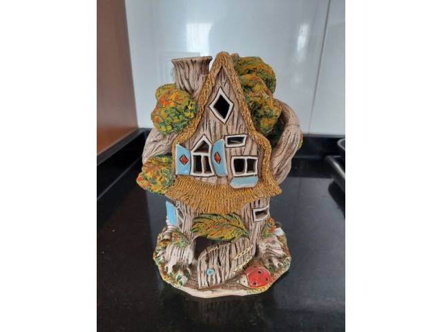 Decorative fragrance lamp in a fairy-tale house design, suitable for essential oils, incense cones and incense sticks. Ideal for a cozy atmosphere and as a decorative highlight.