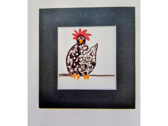 Set of five children's hens with a black passe-partout, original for decorating a play corner or children's room