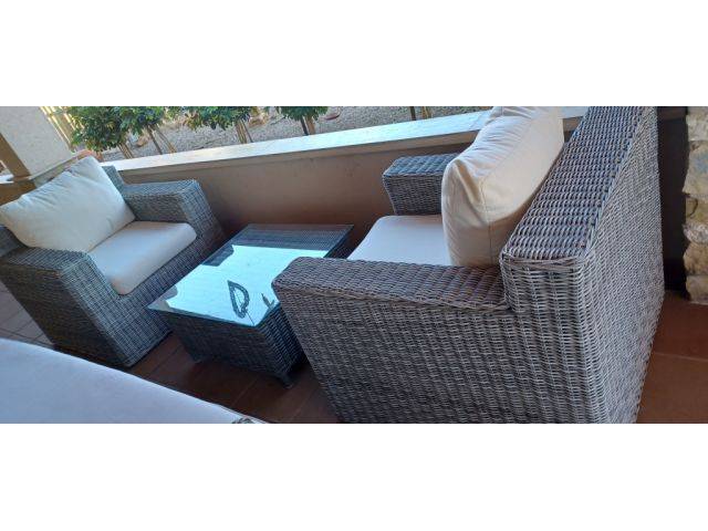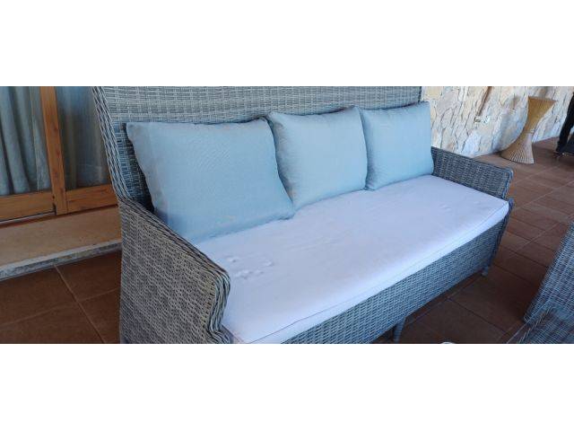 Set of outdoor sofas, perfect for your terrace or garden. The design combines the warmth of synthetic rattan.