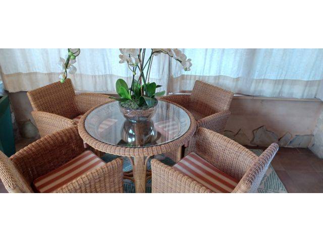 Synthetic rattan of very good brand and quality.