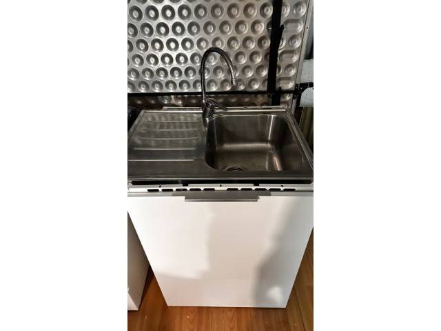 Sink cabinet 60cm with sink (dimensions 50x70cm) and faucet as well as cabinet door in white high gloss. Price €120