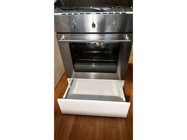 Ikea oven with convection function in a base kitchen cabinet with drawer, white high gloss (Metod series) with ceramic hob.