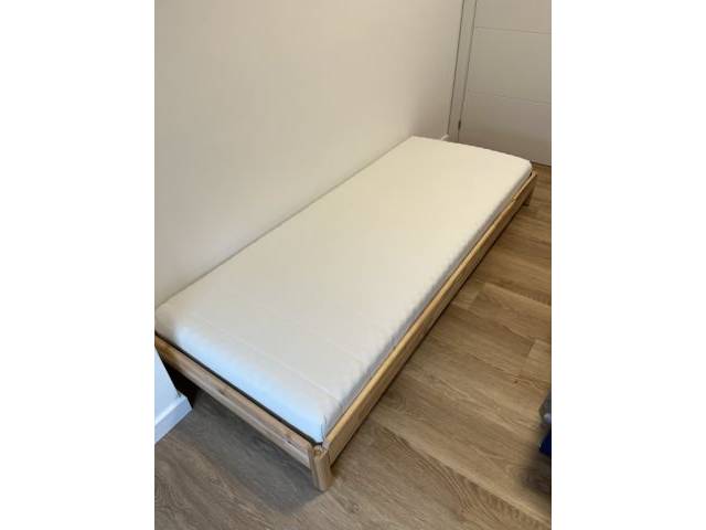 Sell a used IKEA UTÅKER stackable bed frame made of solid pine wood (article number 003.604.84) together with 2 × IKEA ÅFJÄLL foam mattresses, white (article number 805.686.30, each 80 × 200 cm).