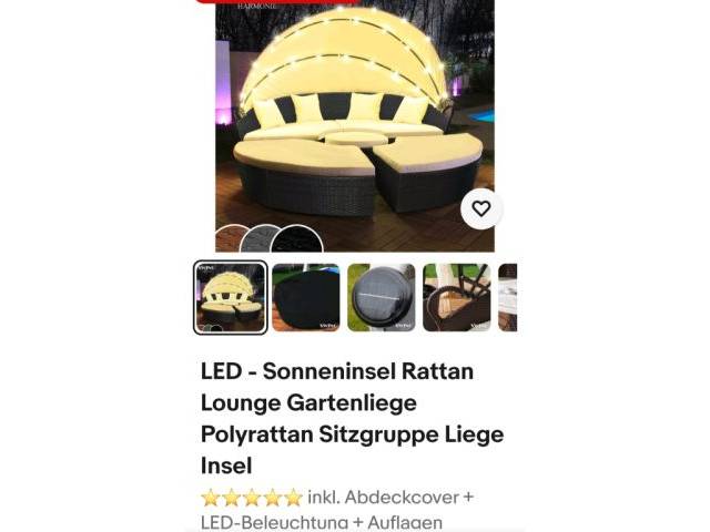 The sun island also features LED lighting, consisting of 30 LEDs which can be switched on and off by hand. The supplied solar module charges the battery, which is also included in the scope of delivery, during the day.