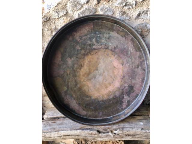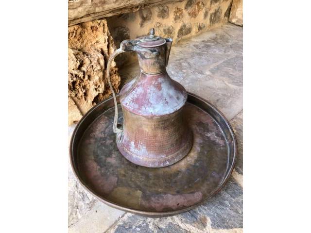 Antique bronze teapot with its plate.