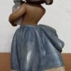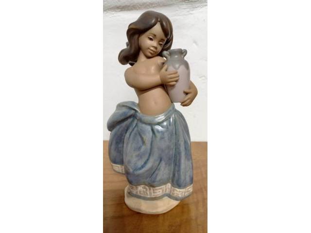 Lladro gres small peasant girl, blue
