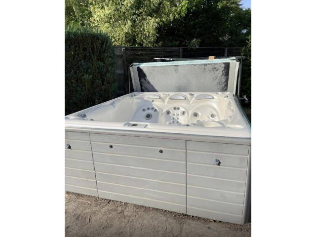 I am selling a luxury outdoor whirlpool/ jacuzzi with capacity for 5/6 people, very little used; we had it on my property in Germany, but it was purchased in the USA a few years ago, used little, in very good condition and works perfectly. It is not a cheap item, it is very robust and made from high-quality materials and techniques, it weighs about 350 kg.