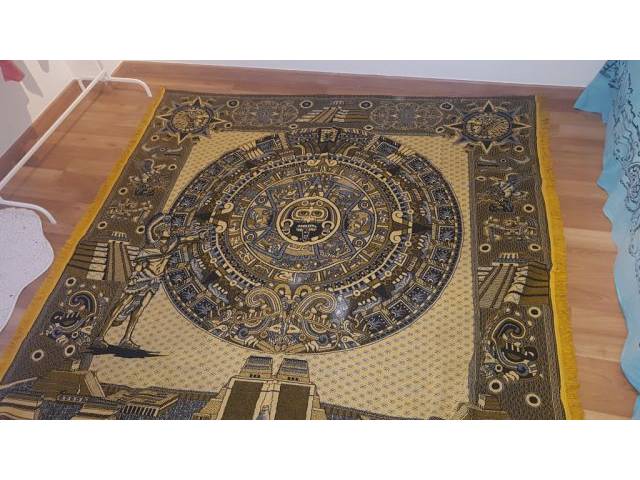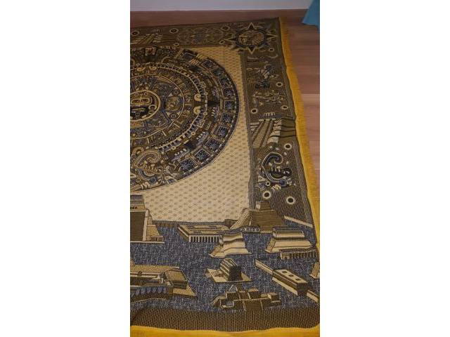 For sale: a decorative, woven wall tapestry in Mexican style featuring the motif of the Maya calendar. A real eye-catcher for the living room, bedroom, or as a special wall decoration.