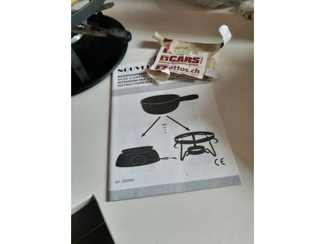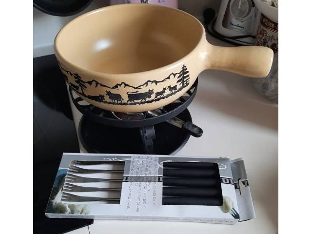 Like-new cheese fondue set from Switzerland, bought at Otto 's.