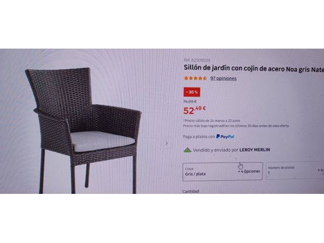 6 garden armchairs in perfect condition, they are stackable so they can be stored and take up little space.