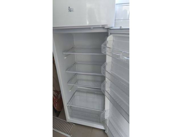 Teka refrigerator with freezer compartment at the top. White, glass shelves