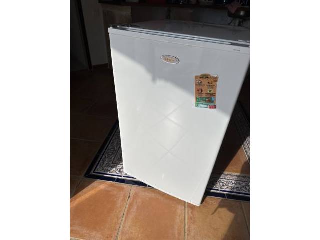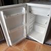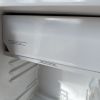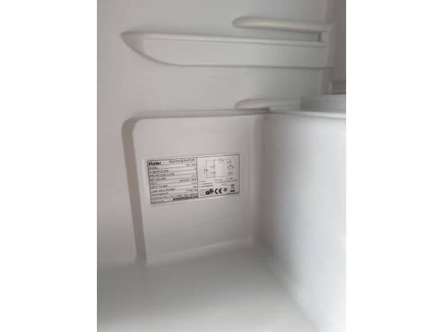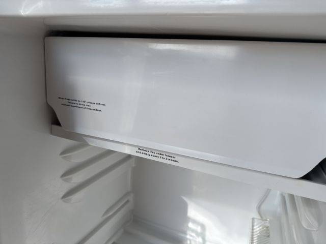 The refrigerator has a vegetable drawer, 2 large and one small glass shelf.