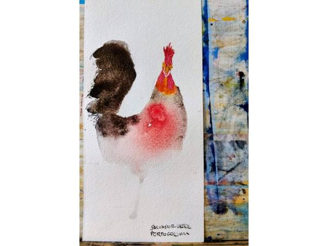 Rooster watercolor on paper