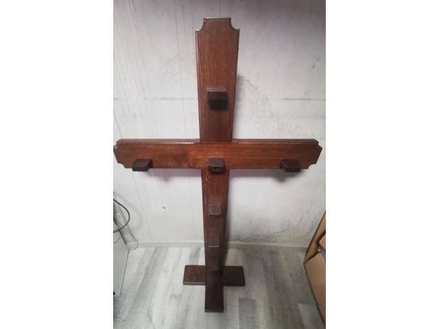 Solid wooden cross for 7 candles or similar, base approx. 440 mm x 420 mm, height approx. 1430 mm x approx. 800 mm. Pick-up near Magaluf, VB 200 €