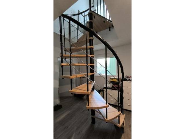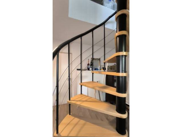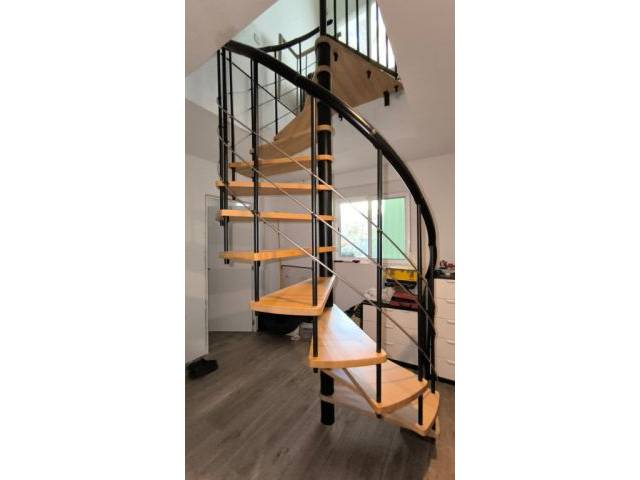 Spiral staircase made of solid wood with aluminum handrail Steps in solid beech