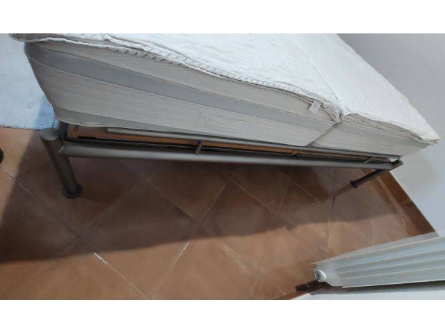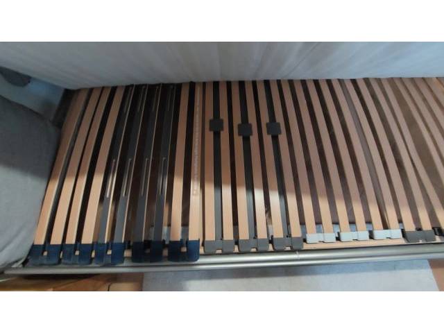Sturdy designer bed with slatted base and mattresses, stainless steel frame, 2.00 x 2.20 m