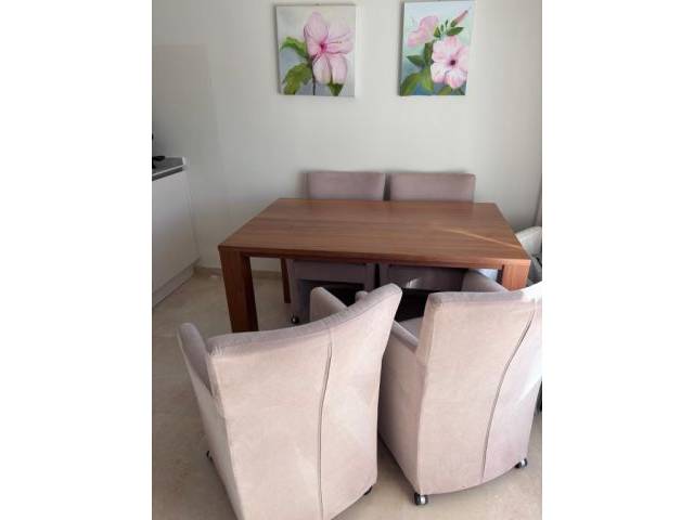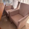 Selling 4 comfortable dining chairs with casters in a light beige tone.