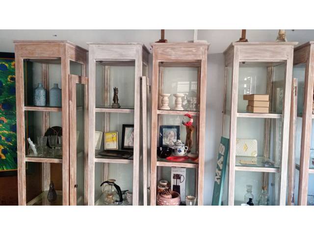 5 vintage display cases, doors (3), unit €99. 40/40/196