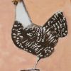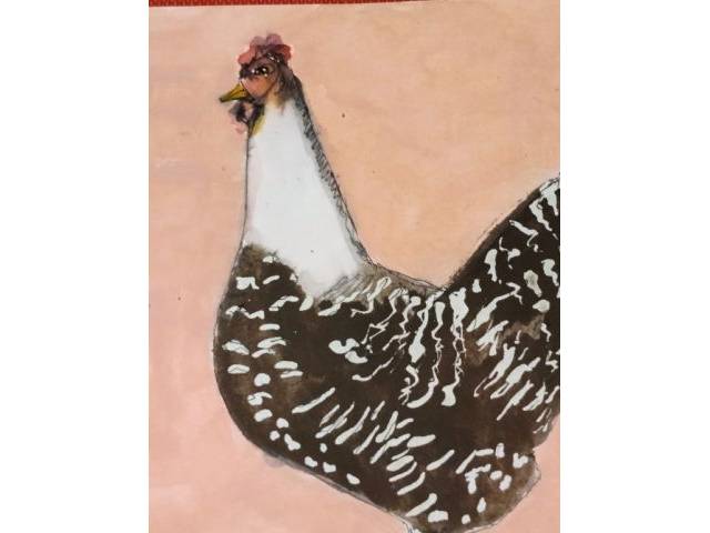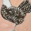 Beautiful watercolor of a hen with black and white plumage, ideal for decorating any space.