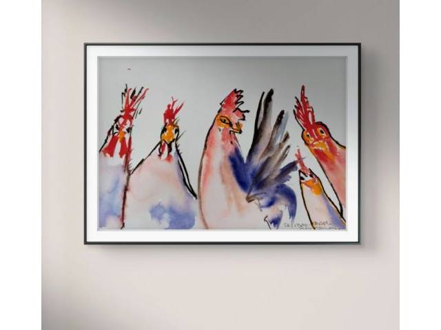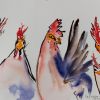 Watercolor of chickens on paper