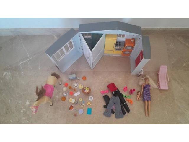 Selling a Barbie house with accessories (Barbie + baby and horse with clothes etc.), well cared for, for 20 euros.