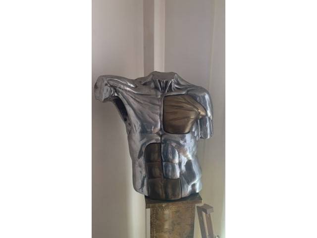 Part of the abdomen and pectoral muscles is made of bronze, the remaining parts are made of silver. The sculpture is heavy and powerful and expresses strength. This torso dates from the 70s. In the 80s, the artist produced this torso in smaller numbers. No. 47 was sold online last year for around 1830.00 euros. The torsos from the 80s, however, are made of bronze and green, black resin. I got an estimate years ago. It was over 4500 euros and I was told that Cilenti only created the No. 1 in this material. Dimensions: Height: 51 cm (20.08 in)Width: 54 cm (21.26 in)Depth: 30 cm (11.82 in). If you are genuinely interested, feel free to make a realistic offer.